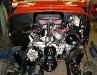 | Week of January 30, 2006 We finished welding the roll cage together and coated it. We wire brushed, sanded, scraped, pressure washed and painted the undercarriage. We started preparing the engine for wiring and installed new accessories. Many of the components were sand blasted, etch primed and painted prior to installation. |